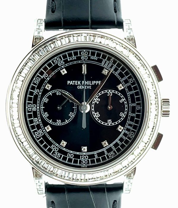 Patek Philippe Chronograph “Lemania Movement” Baguette-Cut Bezel Diamond Index White Gold
